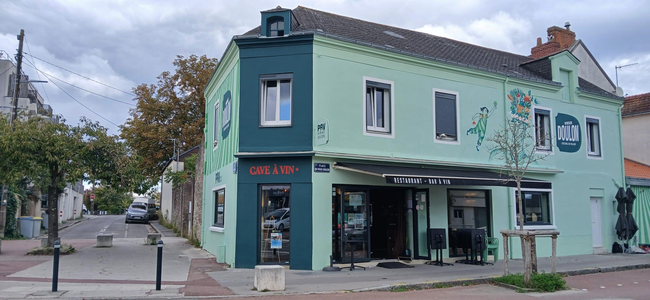 Dans la continuité des sacs shopping et des vitrophanies, la première fresque sur la façade du restaurant Place aux vins marque le début d’une dynamique collective qui s’inscrit dans un processus de réaménagement sur du long terme.